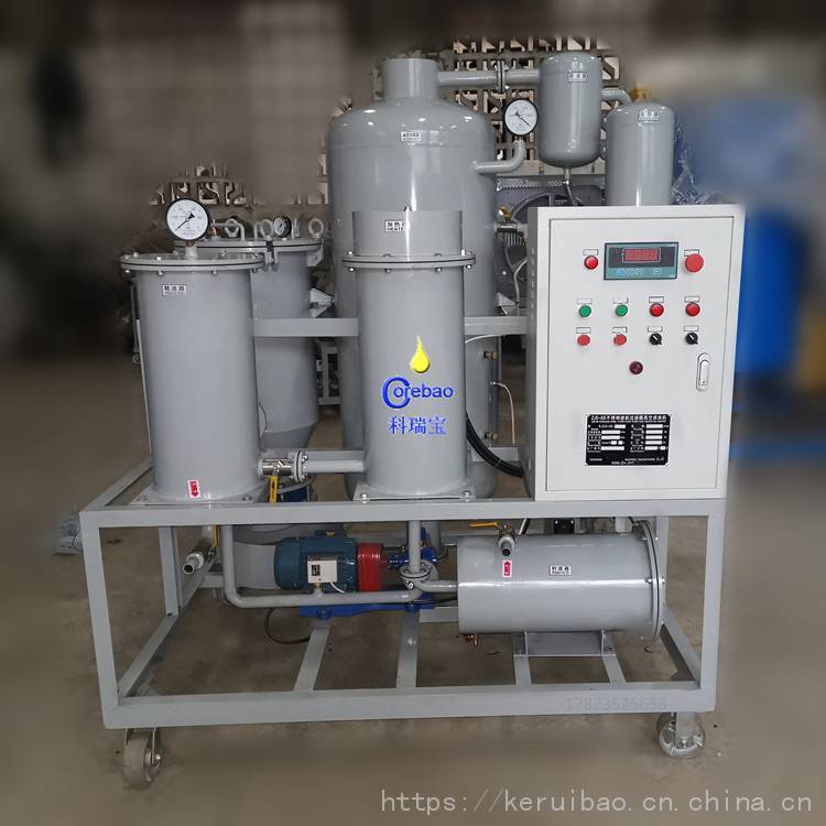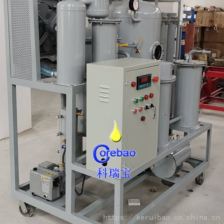 而科瑞宝ZJD系列润滑油过滤机能快速脱除油液中的水分、气体、杂质和挥发物(汽油、柴油、煤油等)。提高油液品质,恢复润滑油粘度、闪点及使用性能。液压系统、动力系统、润滑系统的正常运行。