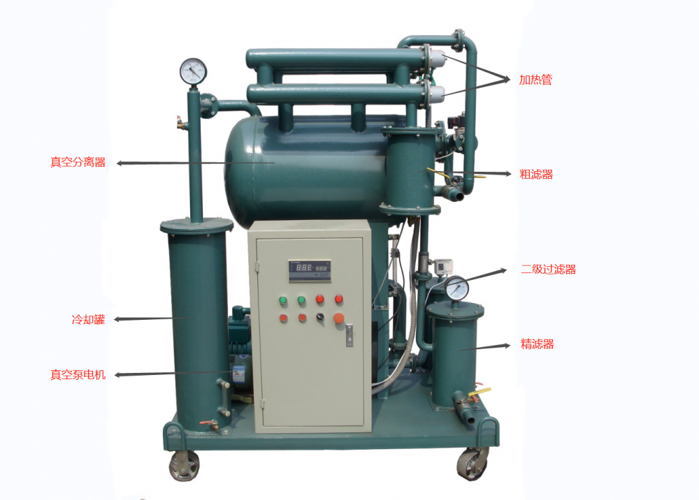 (2)用变压器油绝缘油除去水分杂质设备,它的真空加热脱水功能,精度高,无需耗材,而且操作简便,对变压器油处理完毕后还可以对油液进行真空注油,一举多得。