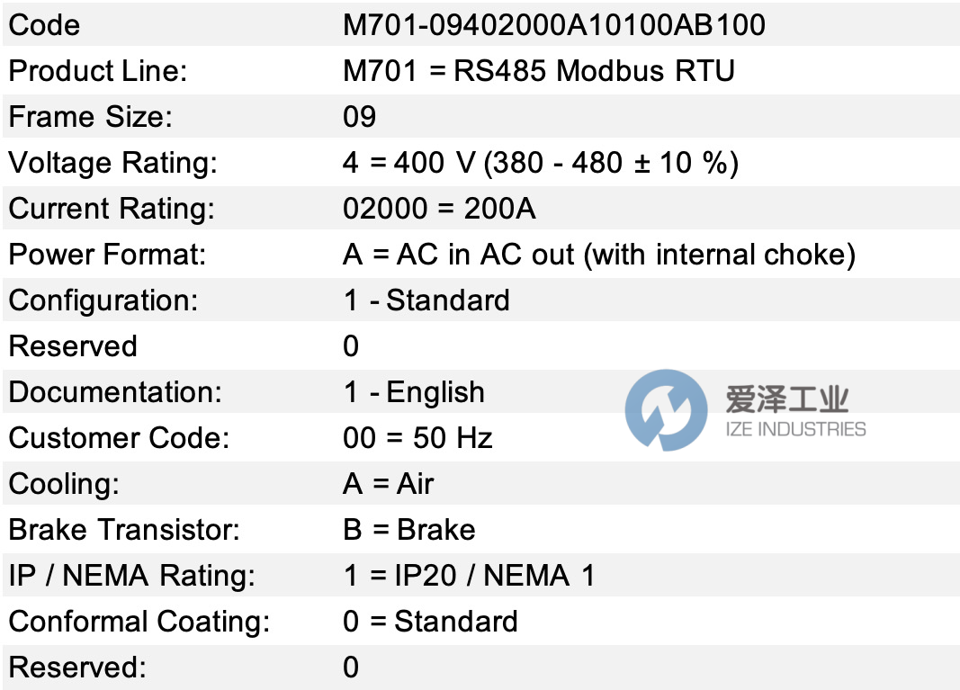 CONTROL TECHNIQUES伺服驱动器M701-09402000A10100AВ100技术参数