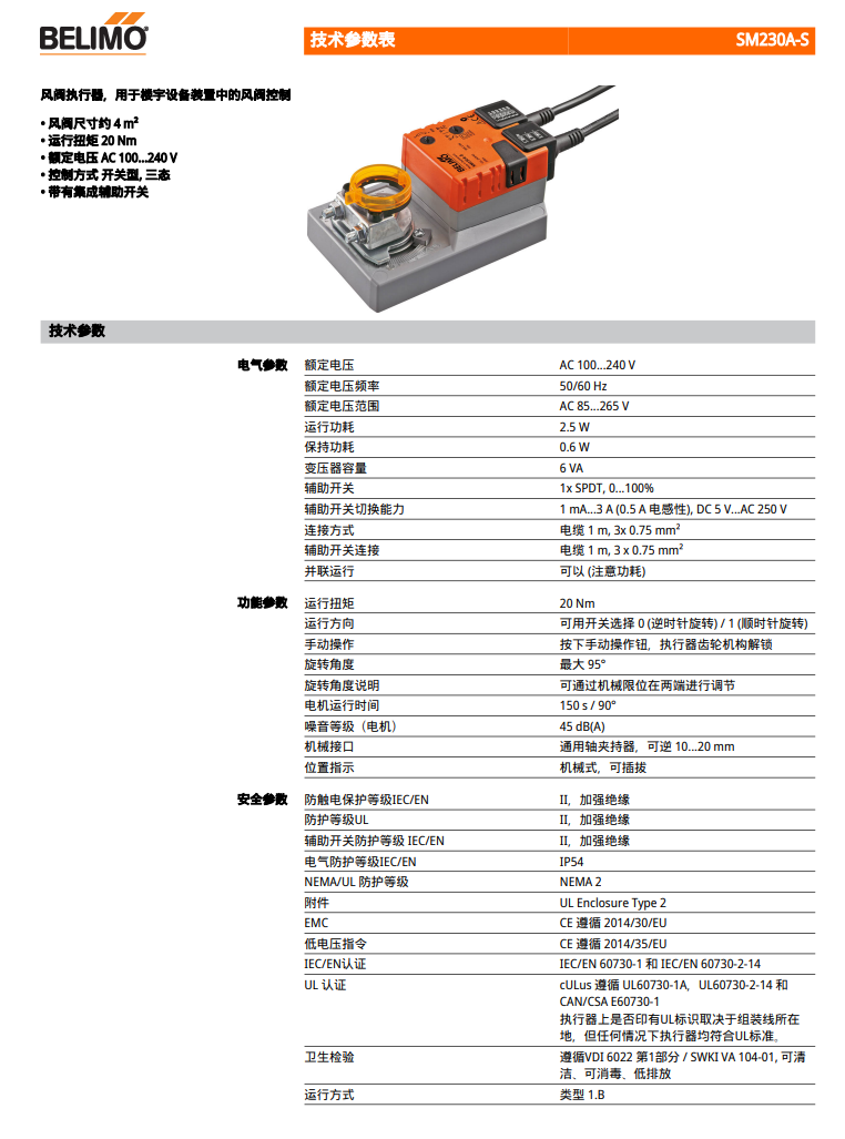 Belimo搏力谋执行器SM230A-S风阀执行机构风阀控制