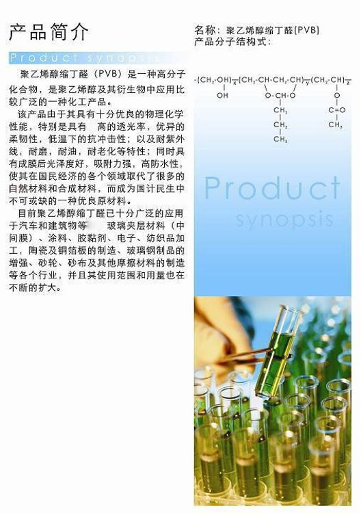 本公司成立于2008年,旨在有机化工有机粘合剂行业中推广产品、沟通信息、服务市场、拓展领域、谋求新材料的发展。主要经营产品有聚乙烯醇缩丁醛(PVB)/聚乙烯醇PVA两大类产品。代理日本可乐丽聚乙烯醇缩丁醛PVB.PVA,系列产品。销售台湾长春聚乙烯醇,聚乙烯醇缩丁醛产品。销售木质素磺酸钠进口俄罗斯产品。年销售额2000万。出口100万元。本公司秉承“顾客至上,锐意进取”的经营理念,坚持“客户为主、诚信为本”的原则为广大客户提供优良的服务。欢迎广大客户惠顾!