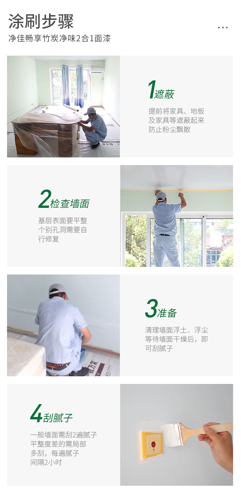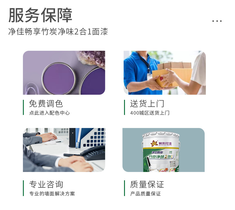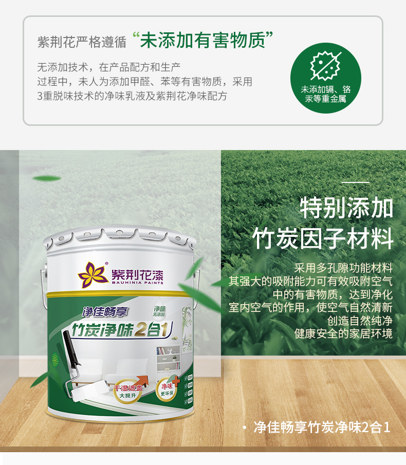 特色服务 : | 厂家负责施工技术指导 | 净佳畅享竹碳2合1 : | 紫荆花净佳畅享竹碳净味二合一面漆 |