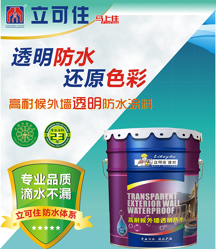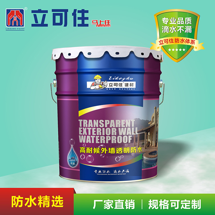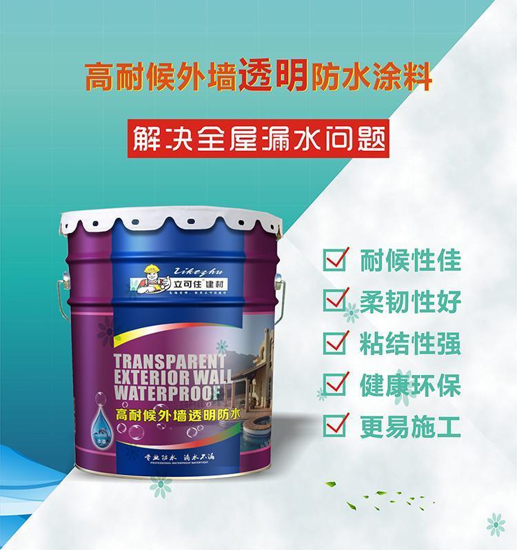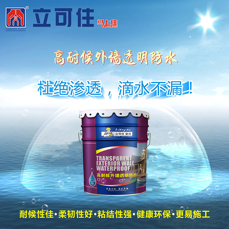 立可住防水涂料 外墙透明防水涂料 是以环保型防水材料为基料添加多种助剂 及填充料经现代高新技术加工而成 的高性能绿色环保型防水材料 有阻隔雨水渗入防水功能 具有韧性好 耐老化等优点 欢迎订购