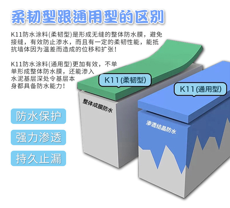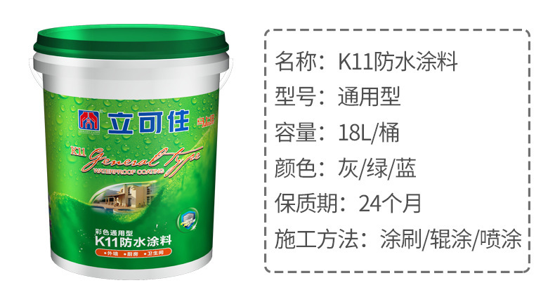 立可住k11防水涂料 防水浆料 是采用高分子聚合物改性水泥无机防水材料组成一种双组份复合防水涂料 具有抗酸碱渗透性强 柔韧性好 抗碱防潮 绿色环保等特点欢迎新老顾客前来订购