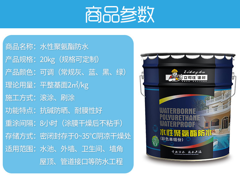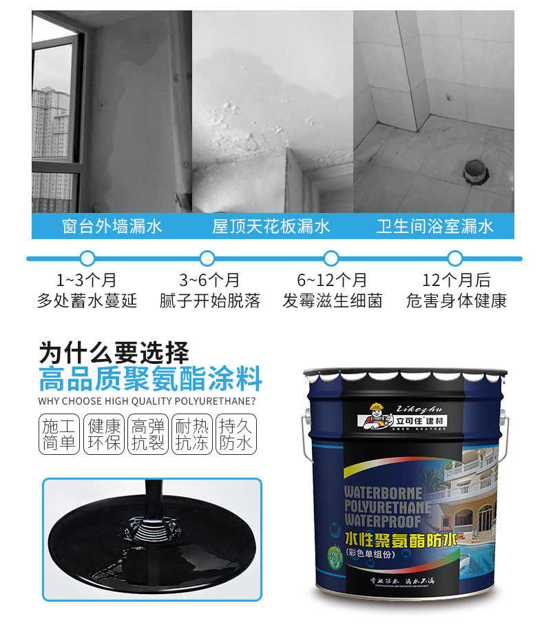 立可住水性聚氨酯防水涂料 是一种合成高分子防水材料 是以天然水做固化剂 是一代的环保型防水材料 可在潮湿的基面施工