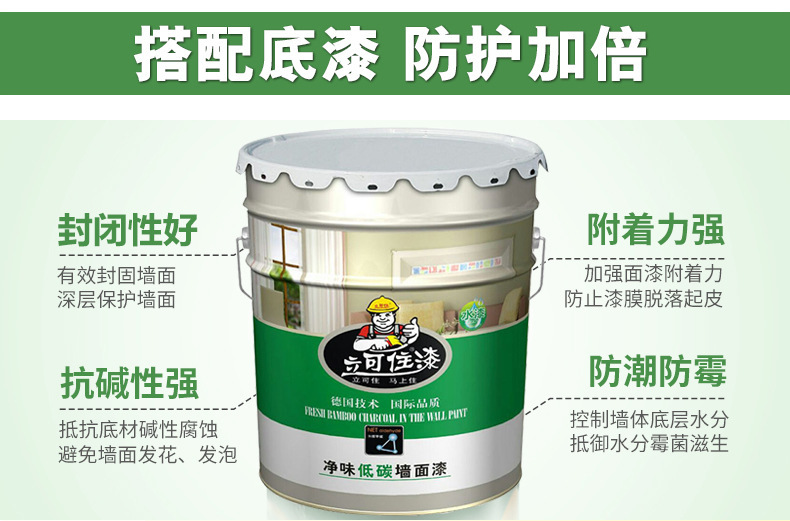 立可住净味低碳墙面漆 内墙防霉乳胶漆涂料 可擦洗乳胶漆 有效封固墙面深层保护墙面 抗碱性强 加强面漆附着力防止漆膜脱起皮 具有防霉 防潮等特点 现货供应 欢迎订购