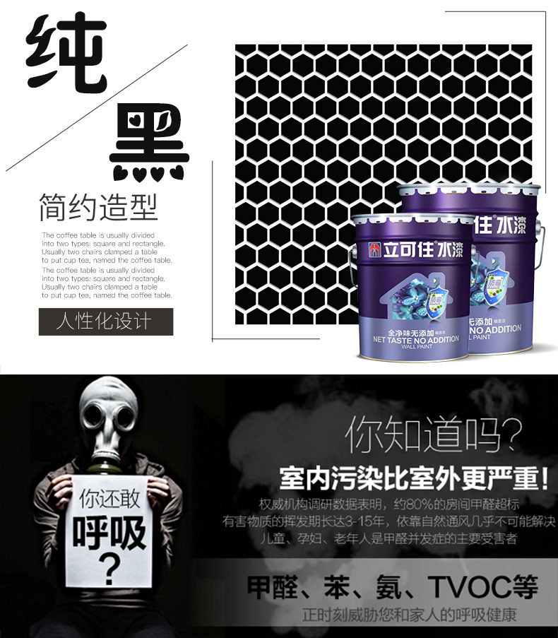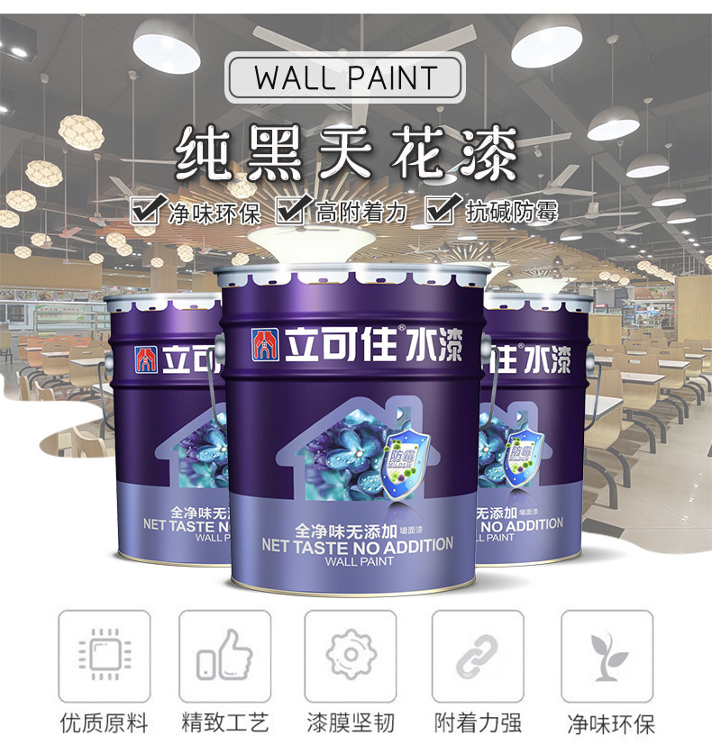 特色服务 : | 厂家负责施工技术指导 | 立可住净味乳胶黑色漆 : | 立可住净味乳胶黑色漆 室内天花黑漆 水泥 |