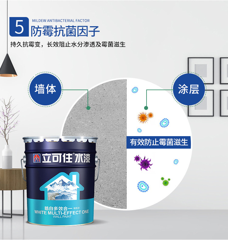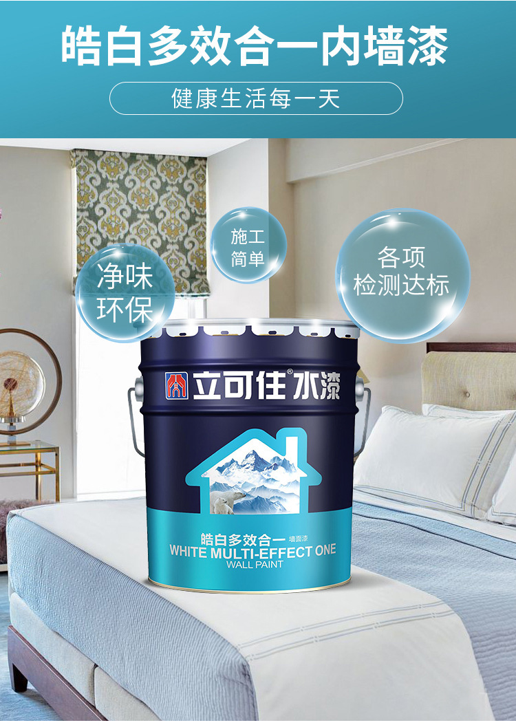 立可住乳胶漆 内墙乳胶漆 水性墙面漆 白色室内环保防霉涂料 水性环保 附着力好 遮盖力强 稳定色泽无暇 具有杭碱防霉 长期阻止水分渗透及霉菌滋生等特点 现货供应 欢迎订购