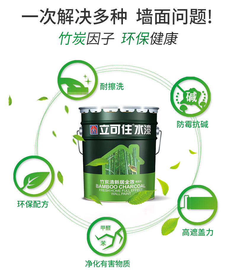 特色服务 : | 厂家负责施工技术指导 | 立可住竹炭内墙漆 : | 立可住白色竹炭内墙漆 家装水性哑光漆 |