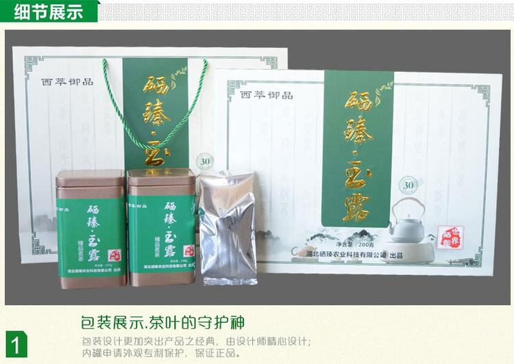品名 | 硒臻玉露 | 配料 | 鲜嫩芽叶 | 规格 | 100克/罐X2罐 |