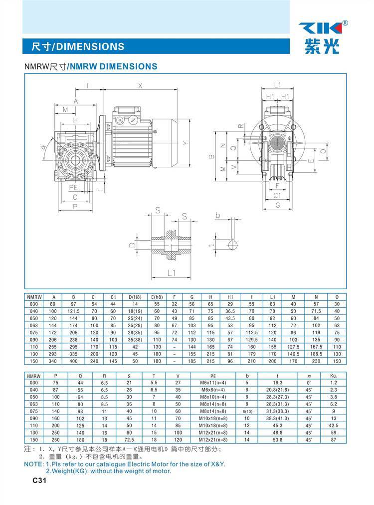 紫光NMRW050蜗轮蜗杆减速机ZIK涡轮变速机铝合金减速箱
