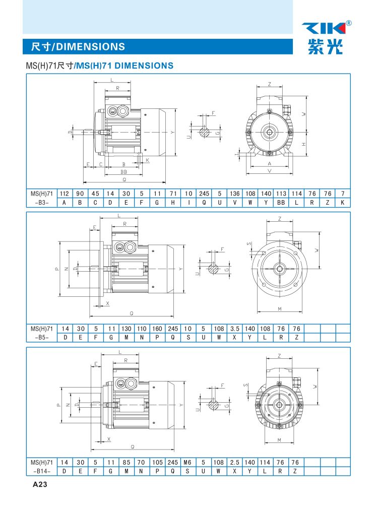 中研紫光电机MS6314\/6324\/7124\/7114\/71120.37KW三相异步电动机