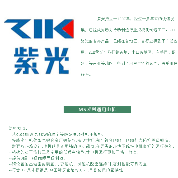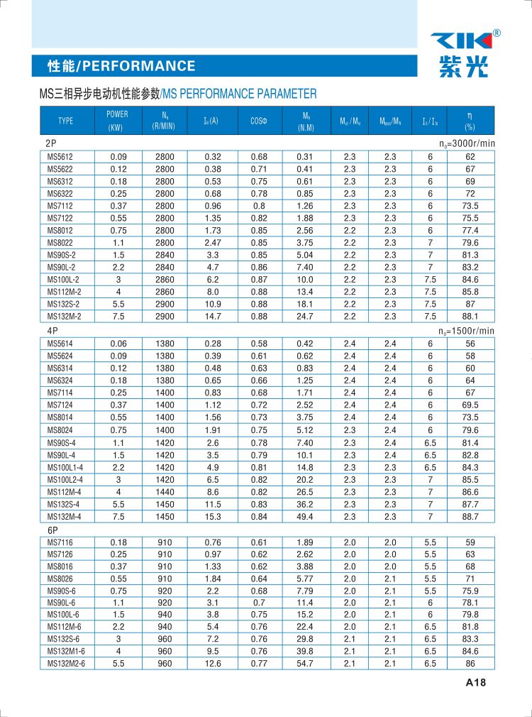 中研紫光电机MS6314/6324/7124/7114/7112 0.37KW三相异步电动机 功率 | 0.37KWW | ||