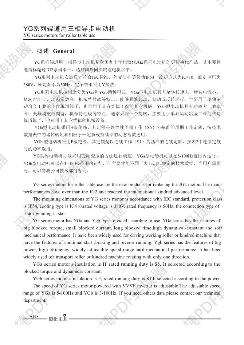 德立卧式辊道电机 三相异步电动机YGA160S2-16-0.75KW-285转