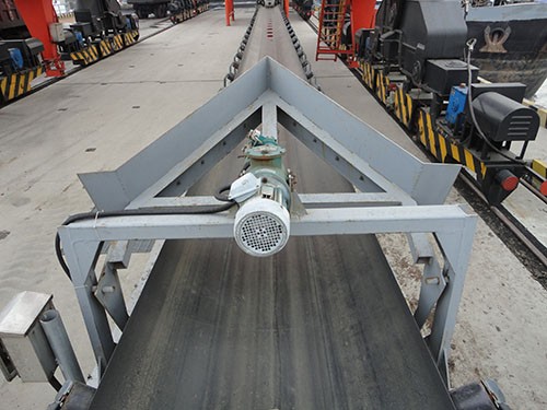 1、卸料状态:犁刀下落,中间机组平托辊上升,两段变槽形托辊为平行托辊。