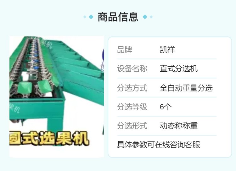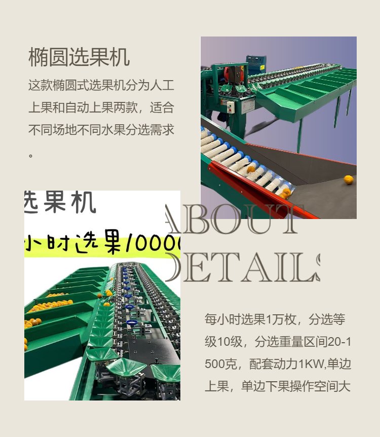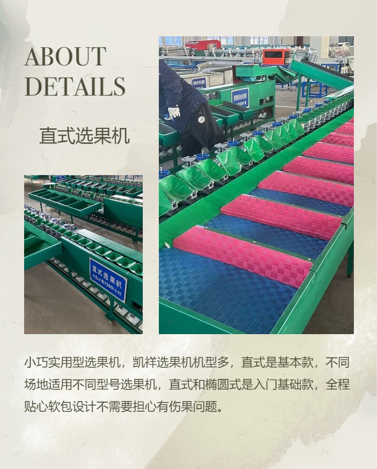 家用型直式选果机,适用分选果品种多,常见的果个在160mm以内的果蔬都可选,像柿子、火龙果、柠檬、红美人、青枣、人参果、苹果、梨、桃、甜瓜、西红柿、番石榴等果蔬,一台机器顶几台。