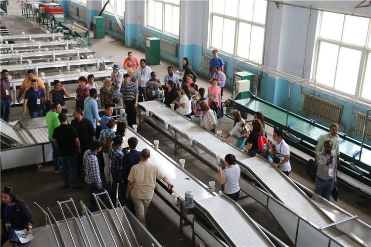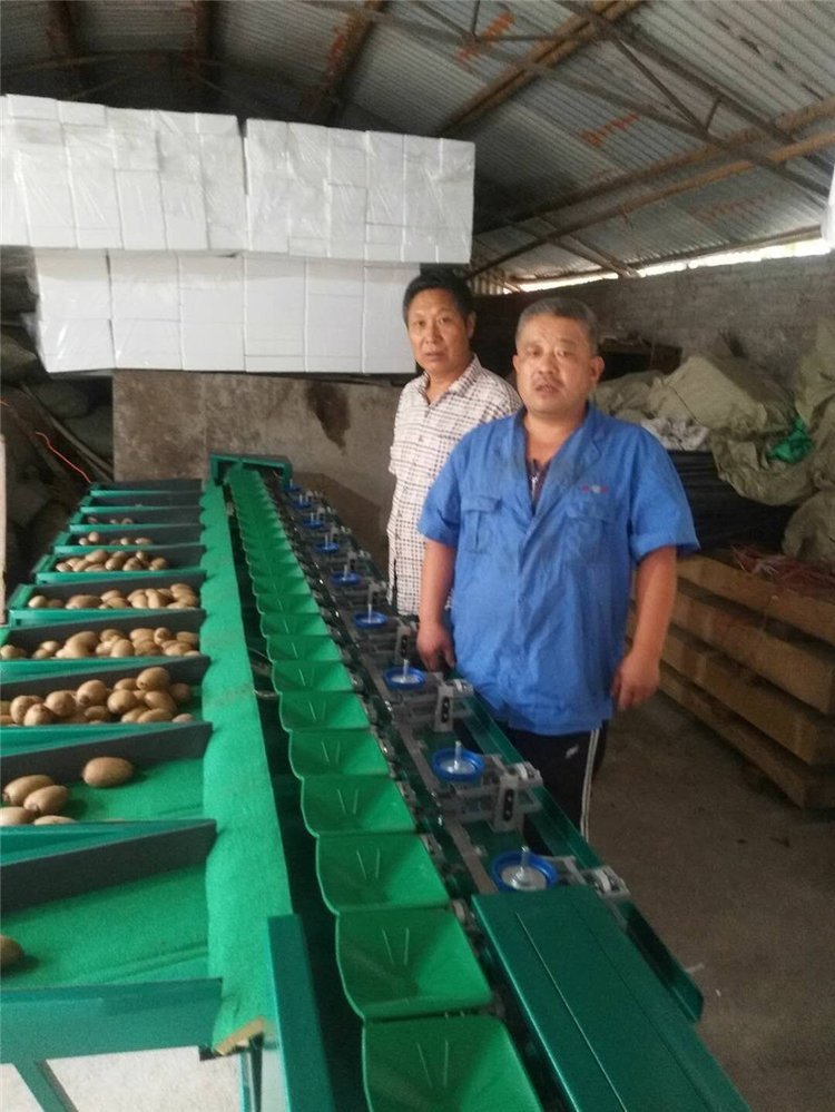 8、选果机先进的预排列技术。只需人工将水果倒在输送带上或上料斗,机械自动将水果进行排队,一个一个落入果盘进行称重分选。