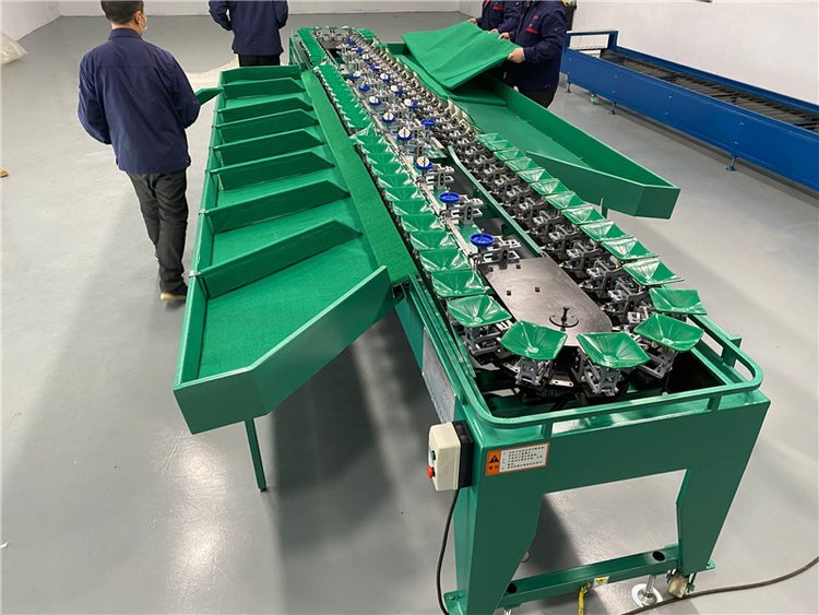 采用天平与杠杆原理,利用盛料器重量与砝码器所设定秤量,以游动时的移位与测量达到选择重量的分等分级。在全自动的传送中,快速准确的对各种需要测量的分级果蔬,如梨、苹果、芒果、桃、柑橘、耙耙柑、青见、猕猴桃、西红柿、马铃薯、石榴、火龙果、甜瓜、人参果、百香果、地瓜、李子、柿子、洋葱等,产生分级。