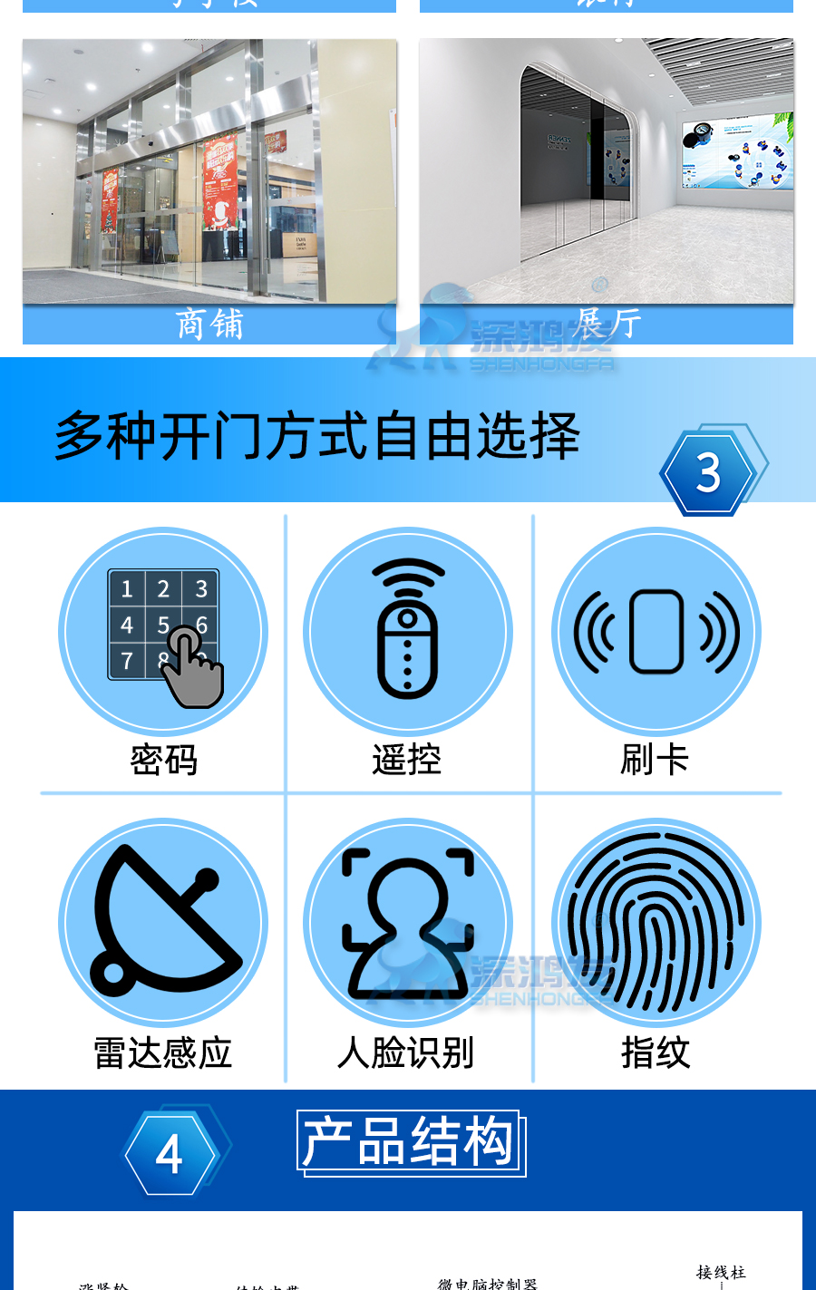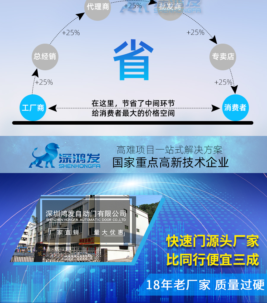 鸿发自动门酒店自动旋转玻璃门上门量尺寸写字楼办公室玻璃平移门