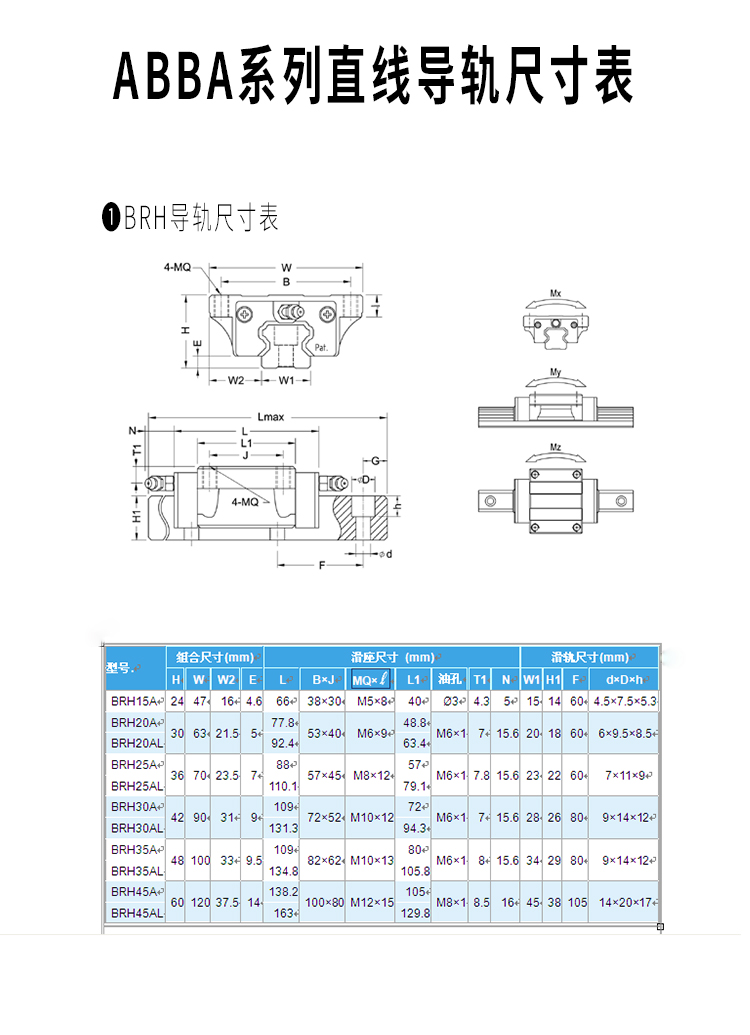 ABBA直线导轨线性滑轨滑块轴承BRD45A0BRC20LABRC25LABRC30LA