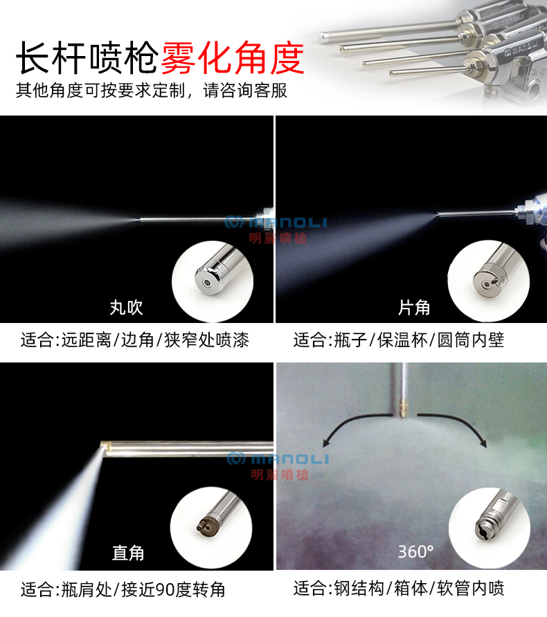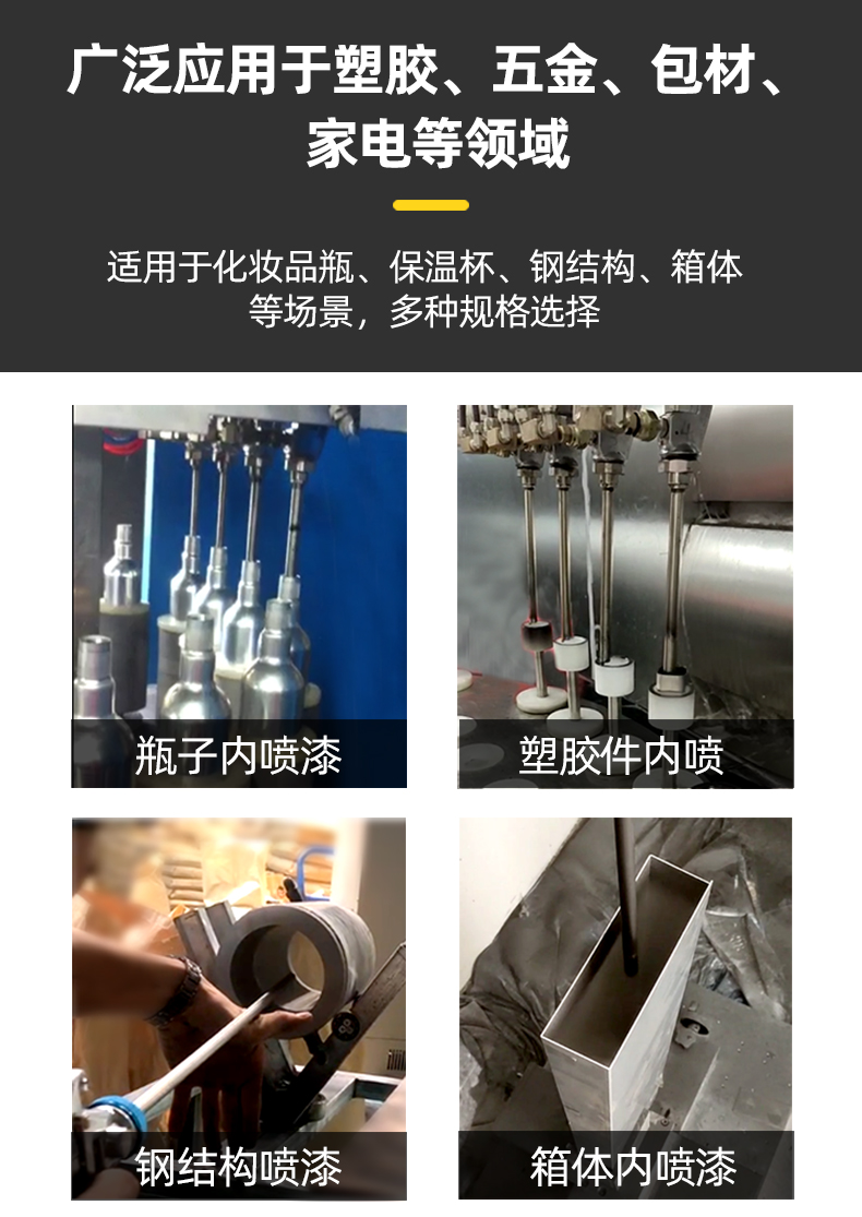 适用范围 | 化妆品喷涂、香水瓶喷涂、管道内壁喷涂 | ||