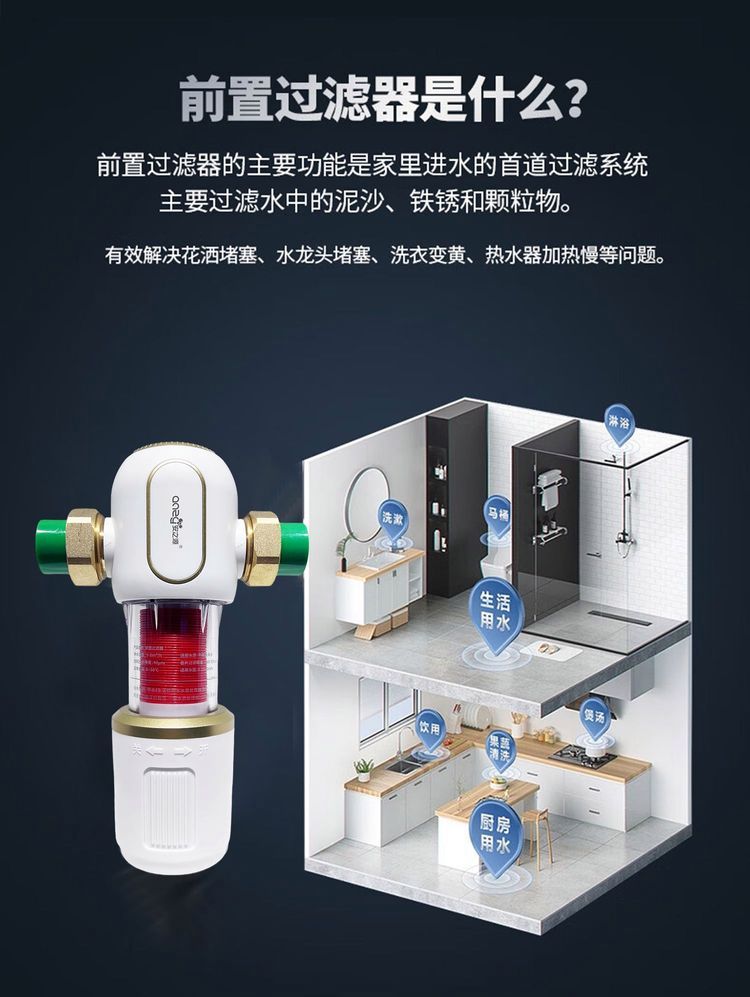 安之源(anzy)全屋自来水自动巡航刮洗功能不锈钢网大流量管道滤水铜前置过滤器Q1Pro