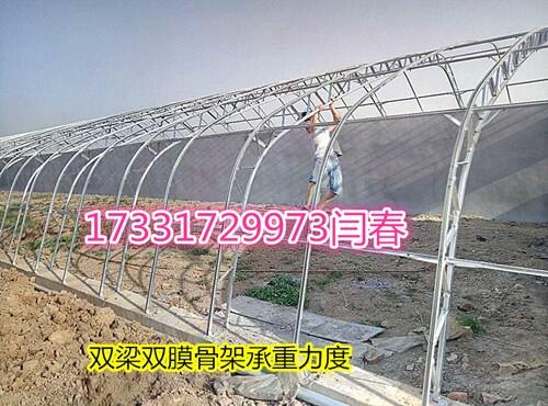 双梁双膜大棚骨架主要用于种植反季节菜,对蔬菜有很高的选择性,是我国建设规模最多的一种棚体,因其建造成本低、安装方便、土地利用率高而得到广泛推广,目前以无立柱大棚双梁骨架建设为主,跨度6-18米,全部采用双梁结构,强度高、抗风雪能力强、操作方便、安装拆卸简单。