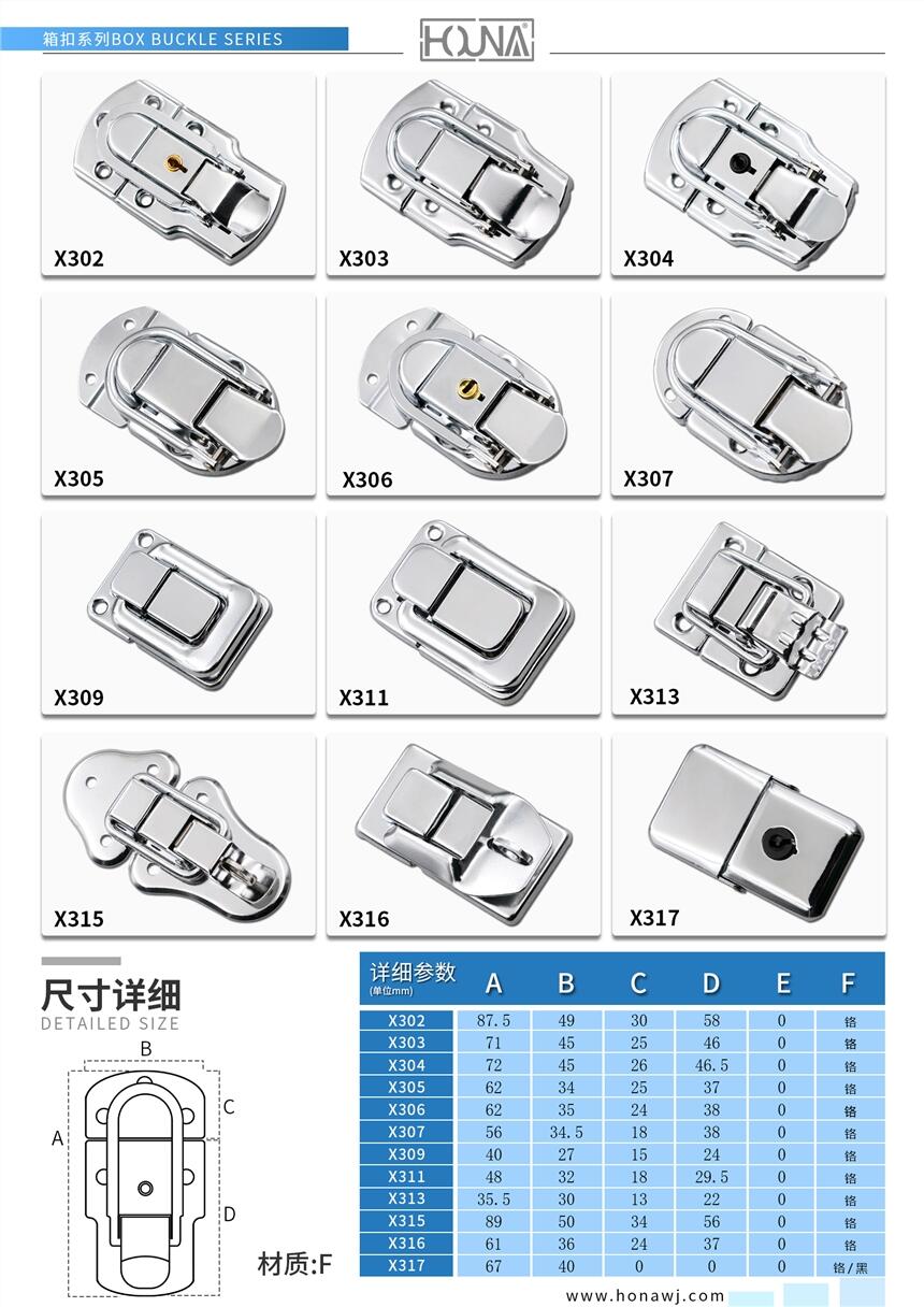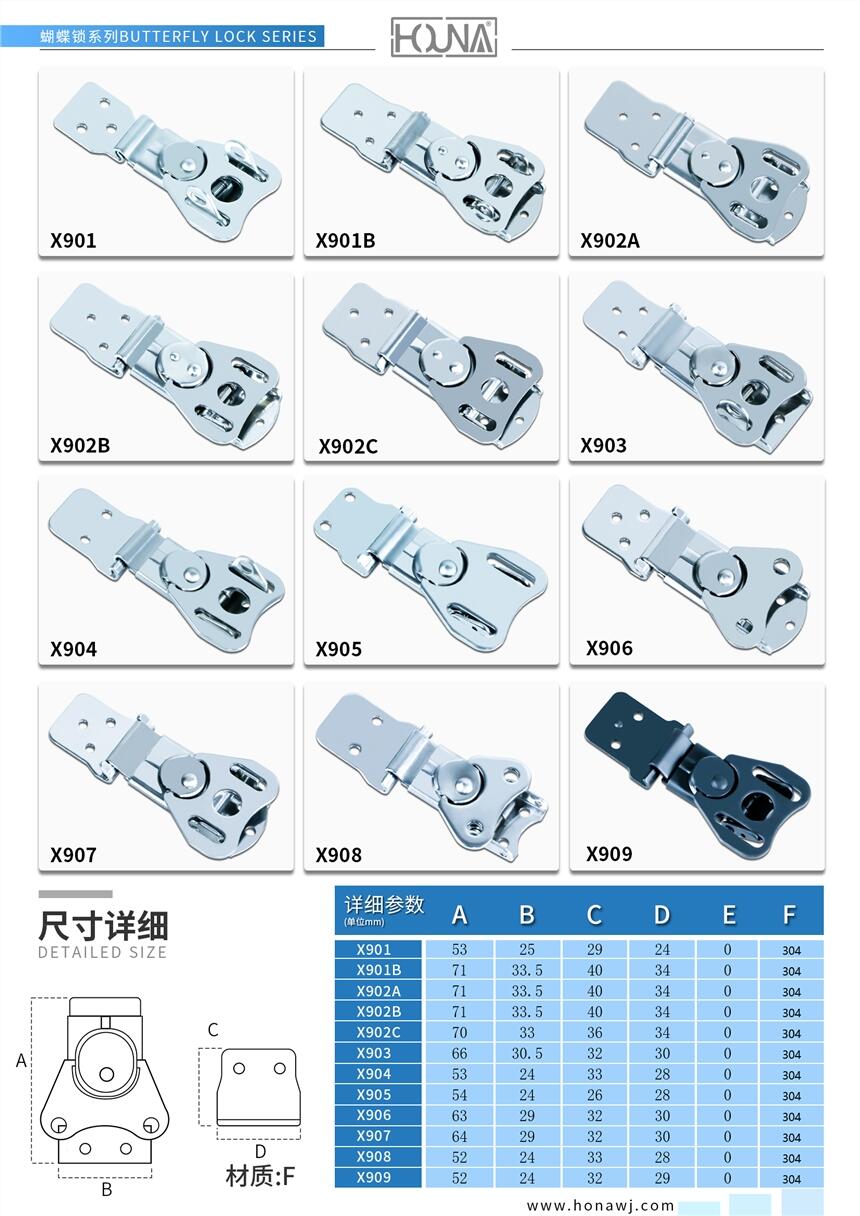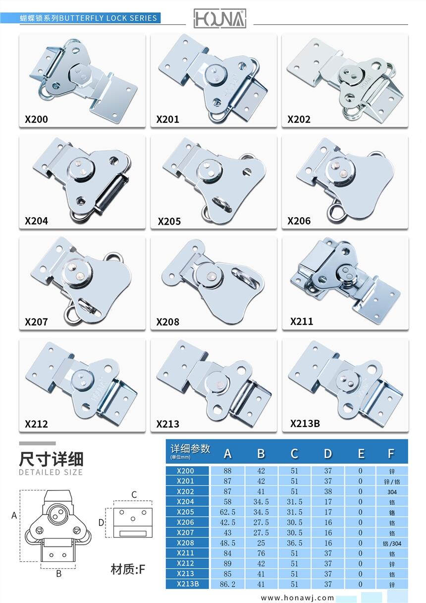 HOUNA华纳 不锈钢平钩带孔蝴蝶锁扣 大号锁芯 运输箱配件锁扣箱扣搭扣