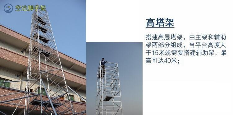 3.设施的主体,包括铝合金脚手架立杆的垂直偏差、立杆于立杆之间的距离、横杆与横杆的距离、立杆如何接长和横杆的长度等,这些都需要根据现场施工来计算再进行搭建。