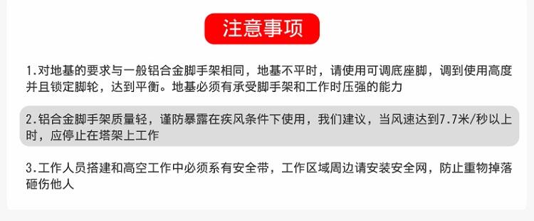 在许多情况下,建造一个脚手架需要几天甚至十多天才能完成。而铝合金脚手架只需要15分钟就能完成,并可根据客户的需求搭建需要的高度,4米、12米、20米、40米随意搭建,结构稳固,安全可靠,可大面积移动,同时满足多人作业,避免多次搭建拆除。大大提高了施工效率,降低了人工成本和时间成本.