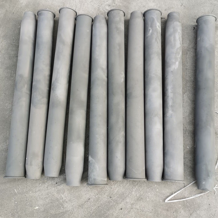 碳化硅火焰管具有热传导性好、热应力高、耐高温、耐腐蚀、耐耐损、抗氧化好、使用寿命长等特点。,适用于钢铁、冶金等行业的间接燃烧炉、自身预热燃烧炉、名火燃烧炉、回火炉、退火炉、淬火炉、焚烧炉等预处理或热处理设备的热传导装置及散热装置