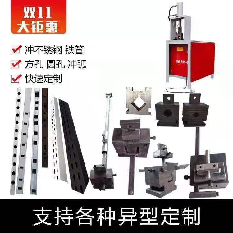 主要应用于不锈钢门窗冲孔、楼梯扶手冲斜弧口、各种五金冲孔模具、(防盗网)冲孔、格栅冲孔、电动门、拉闸门伸缩门冲孔、围栏冲弧、铁管冲孔、护栏压枪尖机、锌钢管冲弧口加工成型,一机多用。