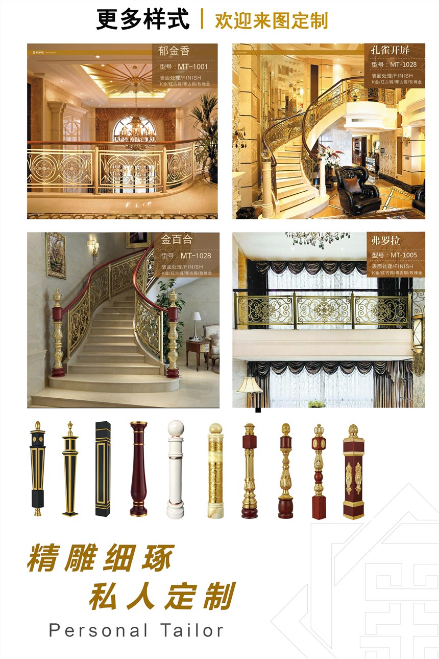 铝艺楼梯连体护栏铜楼梯扶手 铝合金栏杆佛山名庭五金厂家直销