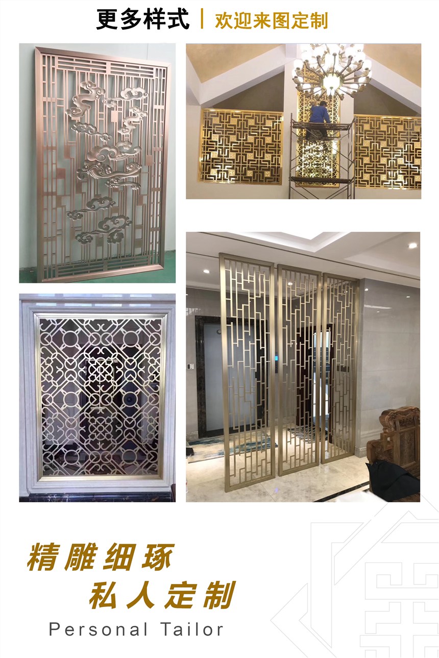 铝艺酒店屏风隔断铝合金镀金镂空雕刻名庭五金定制厂家直销