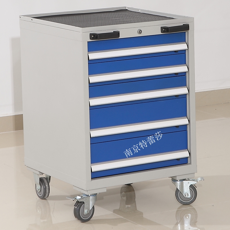工具车有以下特点: 1、工具车的结构设计和特殊的表面处理,能适应工厂较复杂的工作环境。 2、工具车装有轴承导轨,保证单个抽屉承受额定载荷时亦能顺畅开合。 3、工具车抽屉内调节的隔板,能使您随意分隔储物空间。 4、工具车采用全宽型铝合金抽屉把手及可更换的标签,美观、方便、实用。 5、工具车采用的抽屉扣设计,保证抽屉在关闭后不会意外滑出。 6、挡板设计,保证抽屉打开后不会掉落。 7、采用水平锁具,工具车只一把锁就能锁上所有抽屉,保证物品。 8、工具车可选择配置不同高度的抽屉,充分满足用户的需求。 9、工具车车体底部可以配垫脚保护车体在放置或移动时不受损坏,方便用叉车搬运。 10、工具车通常有:机床绿、浅灰色、蓝色。 工具车是在工具车的下面安装脚轮,根据需要可以在顶部配15mm的边框和防滑胶皮 通常情况下脚轮配置为:两个定向轮和两个万向轮,脚轮为红色聚胺脂脚轮。鸡西维修工具车_宜宾工具车-放心省心-南京特蕾莎