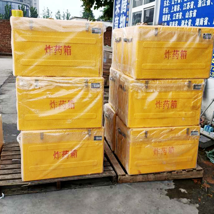 特别是针对开采、化工等危险行业,玻璃钢爆破安全防护箱使用效果更加明显。箱体表面光洁,颜色鲜艳,使用明黄色涂漆,开合方式为上开盖设计,上盖和箱体使用铜质折页和锁具连接,美观耐用。其突出的防静电特性十分适合煤矿企业使用,规格型号齐全,适用于存放不同容量的危险物品。存放Z药和L管的箱体,有几种常用的规格,有300*200*200mm,400*300*300mm,390*260*610mm,800*500*500mm等,并具有相关检测机构出具的检验合格报告,有公安检测报告和煤科院的检测报告,可放心购买。