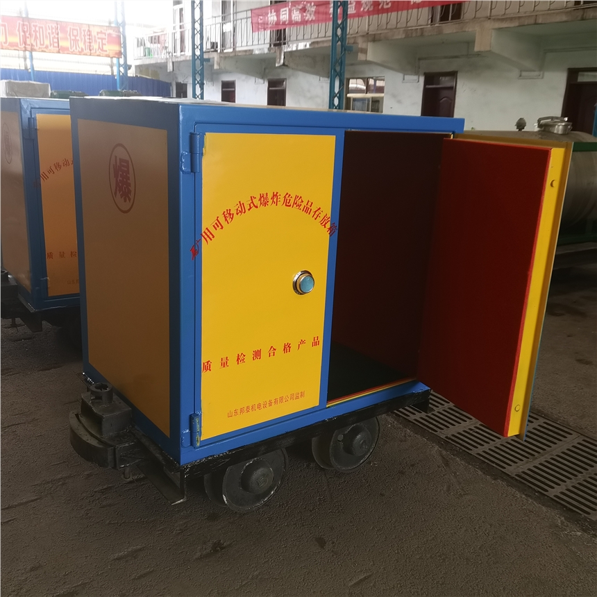 矿井下用的运输车是要有证书齐全的,而且还要正品的国标产品,这样才可以符合矿井下的使用标准,我们的箱体,钢板是6-8mm厚的防爆钢板,加上10mm厚的防静电木板,还要1mm的防火阻燃毡,是正品的国标产品,而且我们的证书齐全,有检测证书还有防静电证书,合格证书,都是可以在安标网上查到的,所以购买一定要认准国标产品,否则不仅耽误工期还会检查不合格爆破用可移动式爆炸危险品存放箱