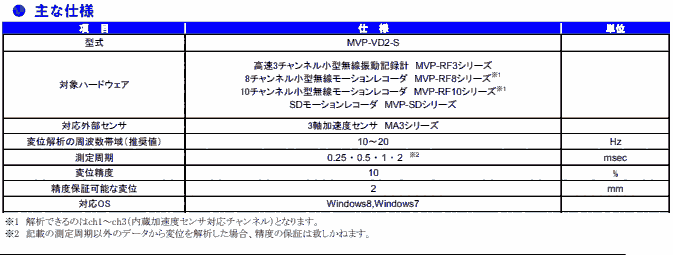 ※3从记载的测定周期以外的数据解析位移的场合,精度的保证难。