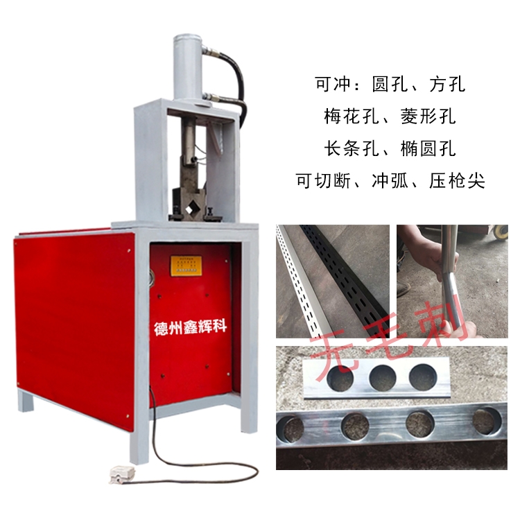 德州市鑫辉科机械有限公司生产方管结构切45度角、铁方管结构折90度角机、门框45度切角机,镀锌钢管高速液压冲孔机、不锈钢板专用切角机、不锈钢门框专用切角机、铝型材高速液压冲孔机设备等。鑫辉科该机适用于多种管材,铝型材小中型型材的切90度折角加工,机床功率大,刚性好,特别适用于大批量管材冲孔加工,冲多种型材的圆孔、方孔,异型孔,以及螺丝孔等,并可承当裁断等工艺。