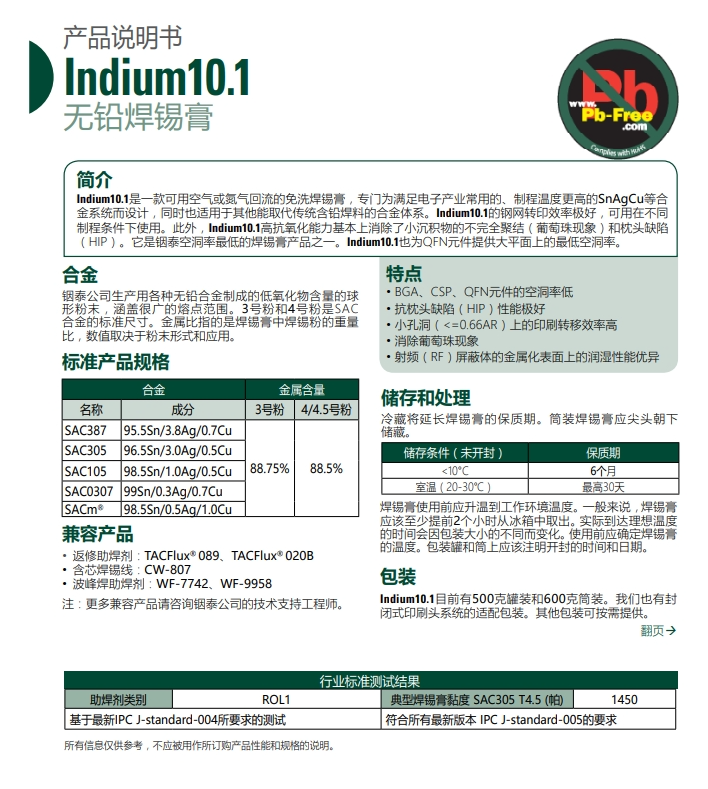 铟泰Indium10.1无铅焊锡膏
