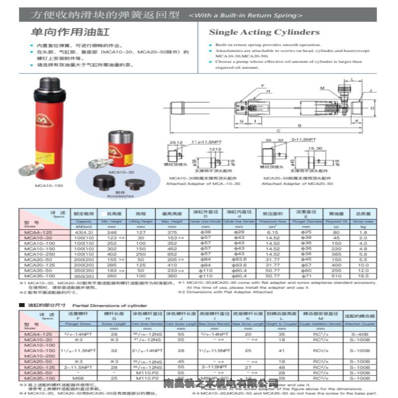 Masada日本マサダ製作所千斤顶MCA10-30 MCA20-50现货代理