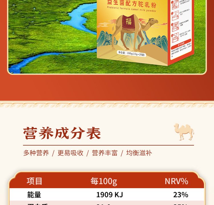 驼幸福 益生菌配方骆驼奶粉 300g/盒 支持批发代理OEM 一件代发 品牌 | 驼幸福 | ||