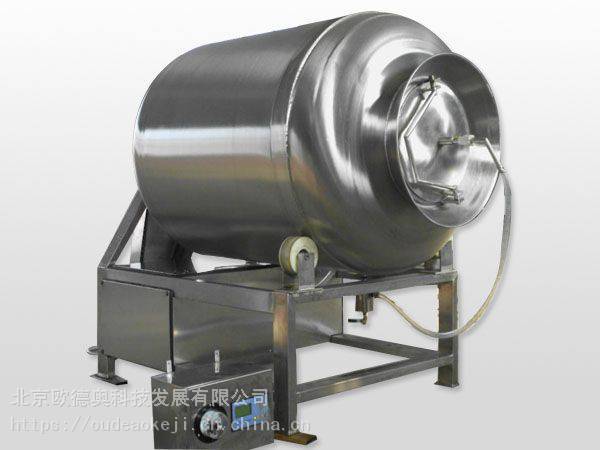 真空腌制机是在真空状态下,利用物理冲击的原理,让肉在滚筒内上下翻动,相互撞击、摔打,达到按摩、腌渍的作用,使肉均匀的吸收腌渍,提高肉的结着力及产品的弹性;转动的同时让物料在滚筒内做膨胀、缩小的往复运动,改善了肉组织的结构,提高了切面效果,增加了出品率。