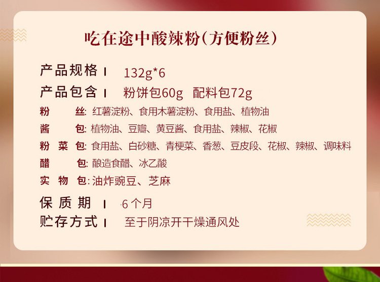 • 规格:酸辣粉132g*6桶