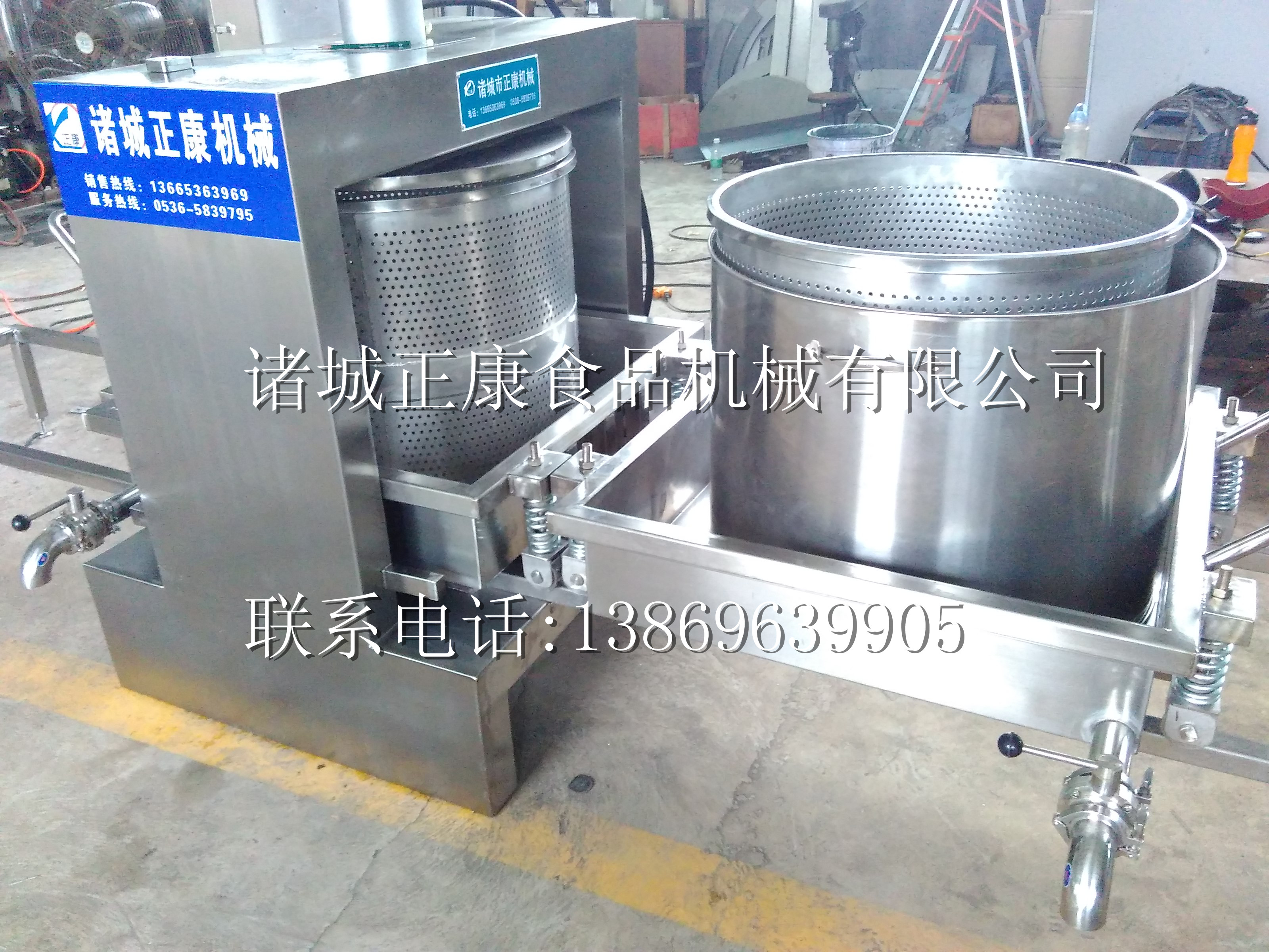 压榨机主要由机架、油缸、压力油泵、压盖、电机、油箱、桶组合而成。底座、压盖及料桶采用优质304不锈钢及不锈板材包裹,符合国家食品卫生要求,噪音小,效率极高,维护方便。经改进后的压榨机具有更高的自动化程度: