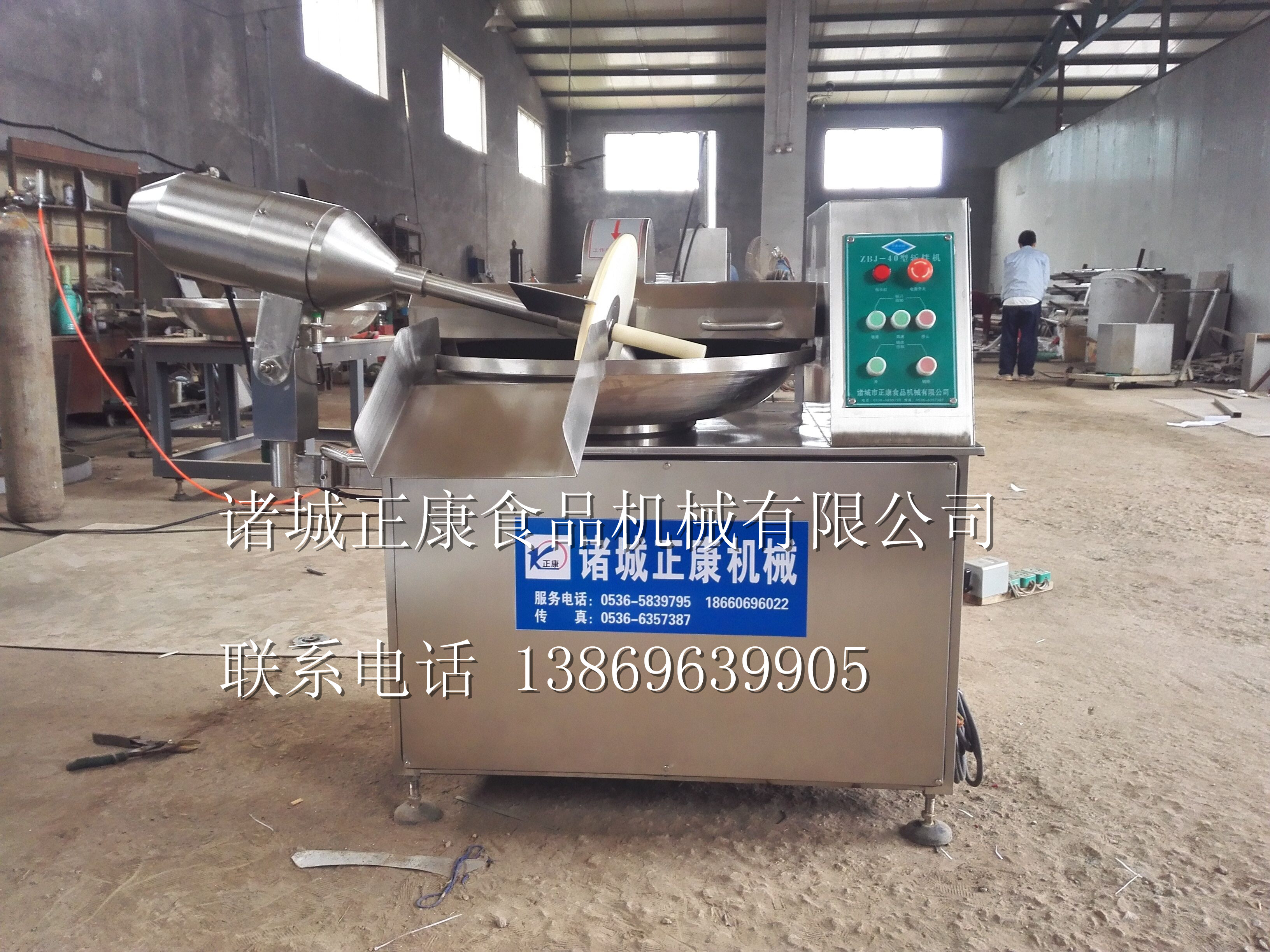 斩拌机是肉制品生产工艺中的关键设备,高速旋转的斩拌刀可把原料肉斩拌成细腻的糜状,同时可以把其它辅料搅拌均匀,是宾馆、酒家、食堂、肉类加工场等单位所不可缺少的肉类加工机械。