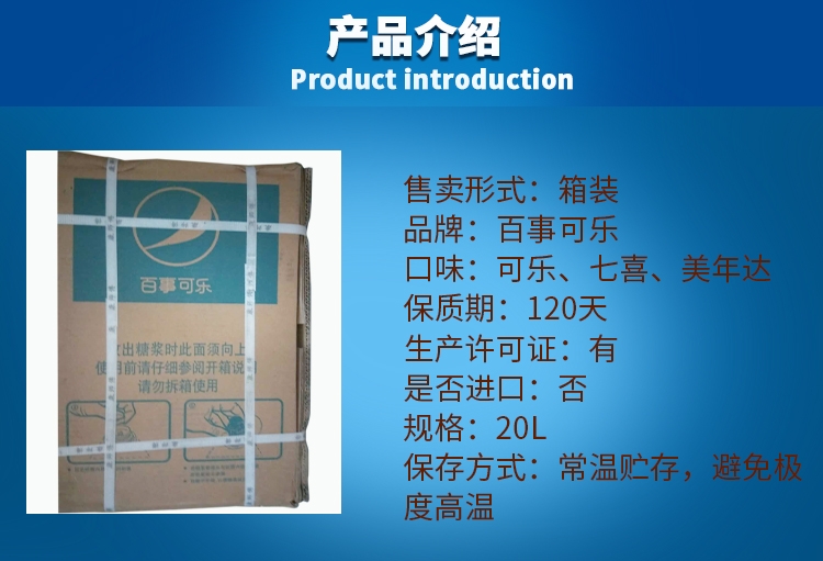 百事糖浆,分为可乐糖浆,七喜糖浆,美年达糖浆。规格分别为20L和10L.