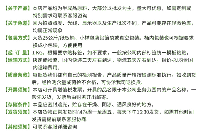 【产品包装】:1kg/铝箔袋;5kg/纸箱;25kg/纸板桶