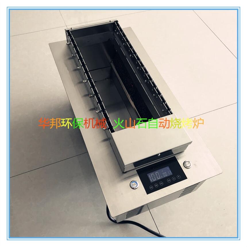 3,火山石自动烧烤炉,采用两侧加热,中间水盒,油滴不到发热板上,所以无烟环保,华邦火山石自动烧烤炉,3200瓦,温度700度以下可调,烤制食物方便快捷。