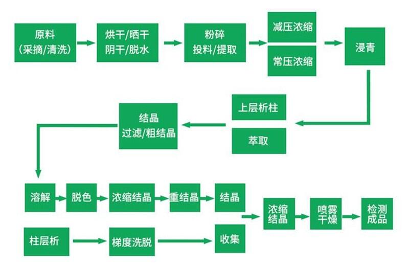 【生产工艺】:精选原料、清洗原料、3遍提取、浓缩、喷雾成粉、过筛灭菌、包装。